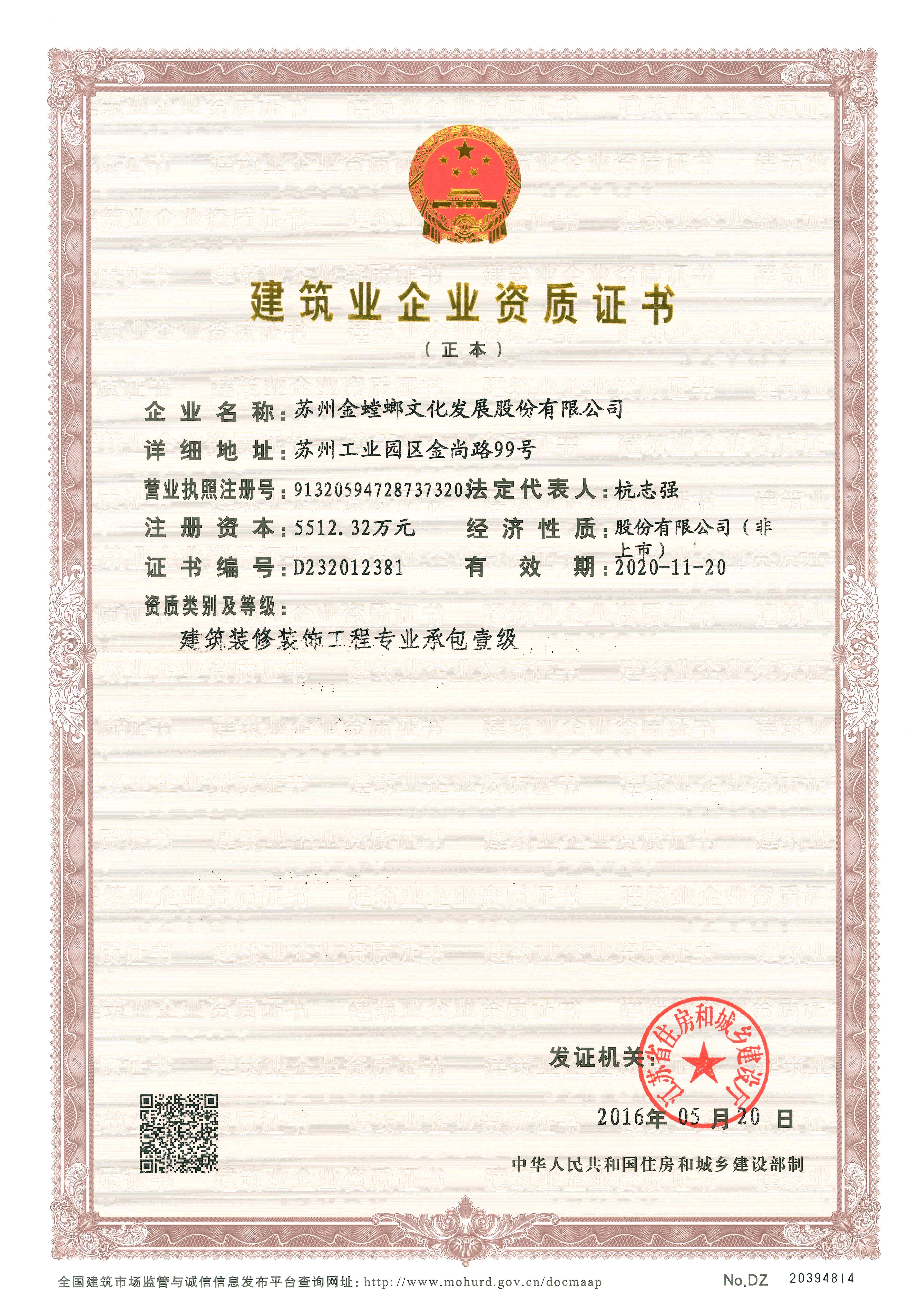 建筑裝修裝飾工程專業(yè)承包一級