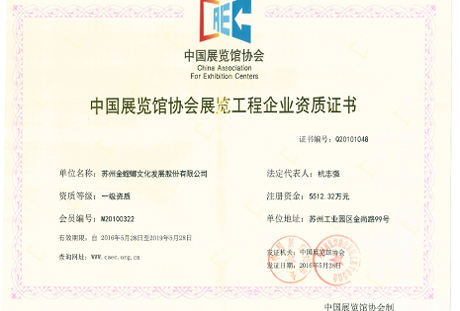 中國展覽館協(xié)會展覽工程一級資質(zhì)