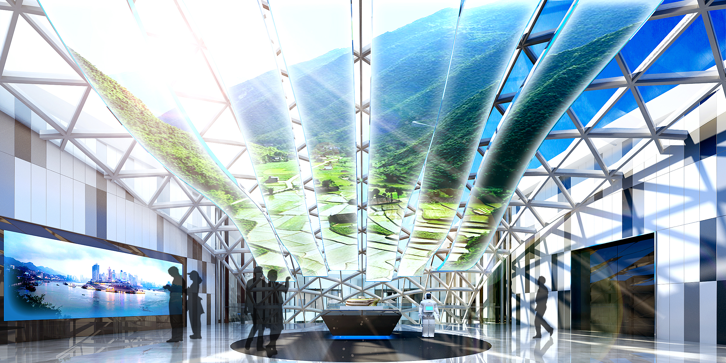 重慶悅來智慧城市展示中心位于重慶市兩江新區西部片區中心位置,悅來會展公園內。建筑面積10000平方米,是三星級綠色建筑。