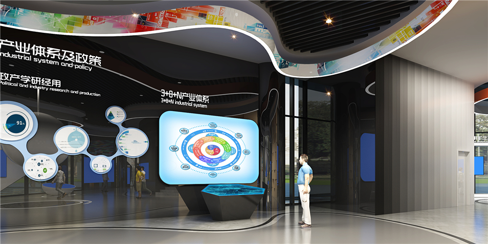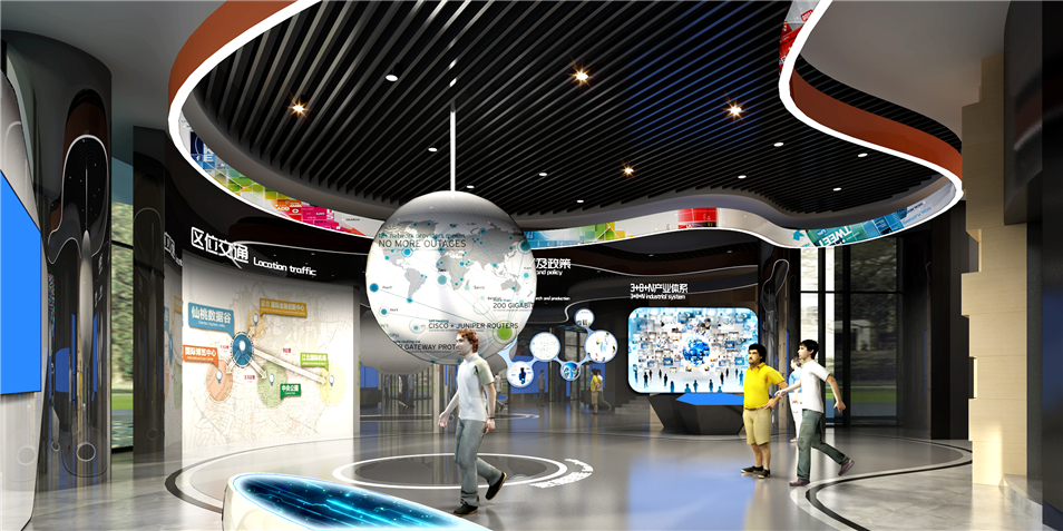 重慶仙桃國際數據谷展示體驗中心,展廳主要布局了序廳、仙桃印象、規劃宏圖、創新平臺、綜合產品體驗區、幻彩走廊、產業洽談推進區、影院共八大主題展區,宣傳數據谷規劃理念和成果,是接待來訪領導、企業、嘉賓的高科技會客廳。