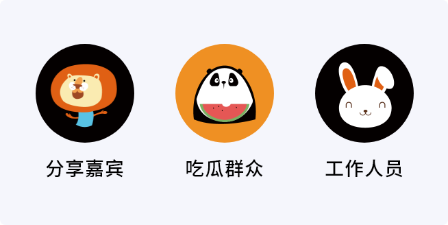 參與活動(dòng)的人員身份分三種:吃瓜群眾、分享嘉賓、工作人員。