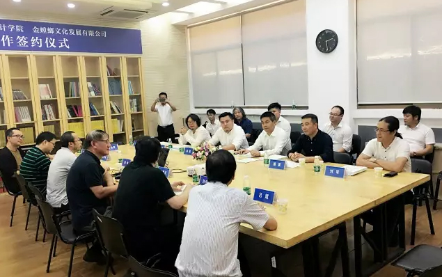 金螳螂文化公司董事長楊震、聯(lián)席總裁高珉、副總經(jīng)理杜菊如、副總經(jīng)理陳泓昕、策劃設(shè)計院院長劉軍、空間設(shè)計院院長婁曉軍、空間設(shè)計院聯(lián)席院長楊顏江和南京藝術(shù)學院院長劉偉冬、副院長呂斌、黨院辦主任郭峰、設(shè)計學院院長鄔烈炎、黨總支書記吳海卓、副院長蔣杰共同出席了簽字儀式。