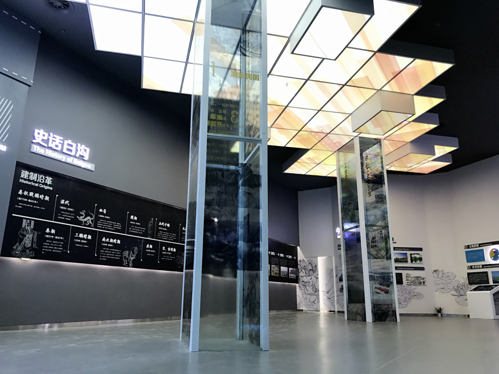 白溝城市規劃展覽館位于白溝京白北路東側白溝芙蓉公園內,建筑面積9001米平方米,與博物館合建主體結構3層,規劃展覽館布展面積3500平方米,由金螳螂文化公司深化設計并施工布展,以城市歷史、建設成就和未來規劃講述白溝的改革開放以來的巨大變革。