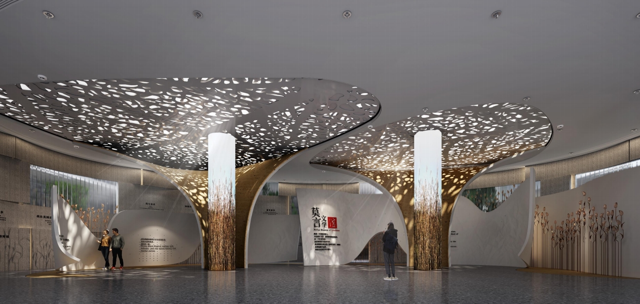 Gold Mantis 《紅高粱》佳作聞名遐邇, 一本《蛙》斬獲茅盾文學(xué)獎(jiǎng) 與諾貝爾文學(xué)獎(jiǎng)兩大獎(jiǎng)項(xiàng)。 書本所蘊(yùn)含的智慧等待我們探尋, 作者莫言先生的故事也值得我們了解, 世界級(jí)文學(xué)殿堂—— 建成后的莫言文學(xué)館將指引答案。 01 緣起:直通文學(xué)王國(guó)的精神堡壘 近年來(lái),隨著莫言獲得了世界文學(xué)至高榮譽(yù)——諾貝爾文學(xué)獎(jiǎng),莫言文學(xué)超越了文化的界限,成為一張中國(guó)名片,在世界范圍內(nèi)產(chǎn)生廣泛影響。山東省高密市借力“莫言”效應(yīng),著力打造紅高粱文化旅游品牌。 Mo Yan 莫言 首位中國(guó)籍諾貝爾文學(xué)獎(jiǎng)獲得者 本名管謨業(yè),1955年出生于山東省濰坊市高密市,中國(guó)作家協(xié)會(huì)副主席,著有《紅高粱家族》《檀香刑》《蛙》等眾多佳作。 紅高粱小鎮(zhèn)位于高密市臨港經(jīng)濟(jì)區(qū)核心區(qū),占地9平方公里,總投資103億元。小鎮(zhèn)以莫言文學(xué)和紅高粱文化為核心,植根于莫言的文學(xué)故鄉(xiāng),以莫言舊居、莫言文學(xué)館、紅高粱影視城為核心載體,突出展示莫言的文學(xué)成就及高密的文化底蘊(yùn),促進(jìn)世界文學(xué)交流,打造“一帶一路”的文化交流樣板區(qū)。 其中,莫言文學(xué)館作為文旅小鎮(zhèn)的核心,用地116畝,展館占地10畝,建筑面積23000平方,總投資3億元。金螳螂文化于近期中標(biāo)莫言文學(xué)館的設(shè)計(jì)施工項(xiàng)目,將深度解析莫言文學(xué)內(nèi)涵,通過(guò)前沿設(shè)計(jì)與專業(yè)施工傾力呈現(xiàn)莫言文學(xué)王國(guó)的魅力。 02 文學(xué)館空間:與時(shí)間對(duì)話的藝術(shù) 對(duì)于我們而言,任何一個(gè)展覽項(xiàng)目都是一種獨(dú)特的使命。它從全面而徹底的構(gòu)思開始,以嚴(yán)格甚至嚴(yán)酷的執(zhí)行結(jié)束,從而使創(chuàng)意能夠轉(zhuǎn)化為真正鼓舞人心的參觀體驗(yàn)。 展陳設(shè)計(jì)中,金螳螂文化設(shè)計(jì)團(tuán)隊(duì)以“我是一個(gè)講故事的人”為設(shè)計(jì)理念,用喚起感官聯(lián)覺(jué)的創(chuàng)新展陳形式,將莫言的文學(xué)內(nèi)涵轉(zhuǎn)化為具象的藝術(shù)展示。 莫言文學(xué)館展陳設(shè)計(jì) 初步效果圖 前廳內(nèi),利用層高優(yōu)勢(shì),打造明亮通透、大氣磅礴的藝術(shù)化空間。正中間的藝術(shù)造型以科技手段結(jié)合紙張的藝術(shù)表現(xiàn)形式,紅高粱藝術(shù)裝置作為點(diǎn)綴,以一種有機(jī)的設(shè)計(jì)讓空間融于自然,渾然一體。日光傾瀉帶來(lái)無(wú)限希望和遐想,就像莫言的文學(xué)作品,用文字突破時(shí)空形成的經(jīng)緯限制。 金螳螂文化設(shè)計(jì)團(tuán)隊(duì)充分解讀建筑設(shè)計(jì)語(yǔ)言,依據(jù)建筑形態(tài)合理規(guī)劃展陳布局,充分利用中庭中空的建筑特點(diǎn),依托莫言的文學(xué)特性,引入時(shí)間與光影的語(yǔ)言,為高密人民豎起新的精神地標(biāo),打造輻射全國(guó)、乃至世界文學(xué)界的人文殿堂。 03 打破常規(guī)的藝術(shù)設(shè)計(jì):自然與本真 圍繞莫言構(gòu)建的“高密東北鄉(xiāng)”的文學(xué)地理概念,用“出走、找尋、回歸、超越”四個(gè)階段遞進(jìn)式構(gòu)筑“莫言的文學(xué)王國(guó)”,讓觀眾得以從一個(gè)全新的視角和維度認(rèn)識(shí)到莫言文學(xué)的價(jià)值,沉醉于莫言文學(xué)的藝術(shù)魅力。 除展覽空間之外,莫言文學(xué)館還配備有閱覽室、報(bào)告廳、文學(xué)研究室、文創(chuàng)空間與辦公室,兼具展示性與功能性。 希望構(gòu)建人與自然、空間與自然的相互聯(lián)系,喚醒心靈最深處的記憶,體驗(yàn)其背后的精神實(shí)質(zhì),將設(shè)計(jì)原則中所體現(xiàn)的自然、和諧、秩序,統(tǒng)一在物理空間內(nèi),力求尋找人體尺度與心靈廣度的回歸。