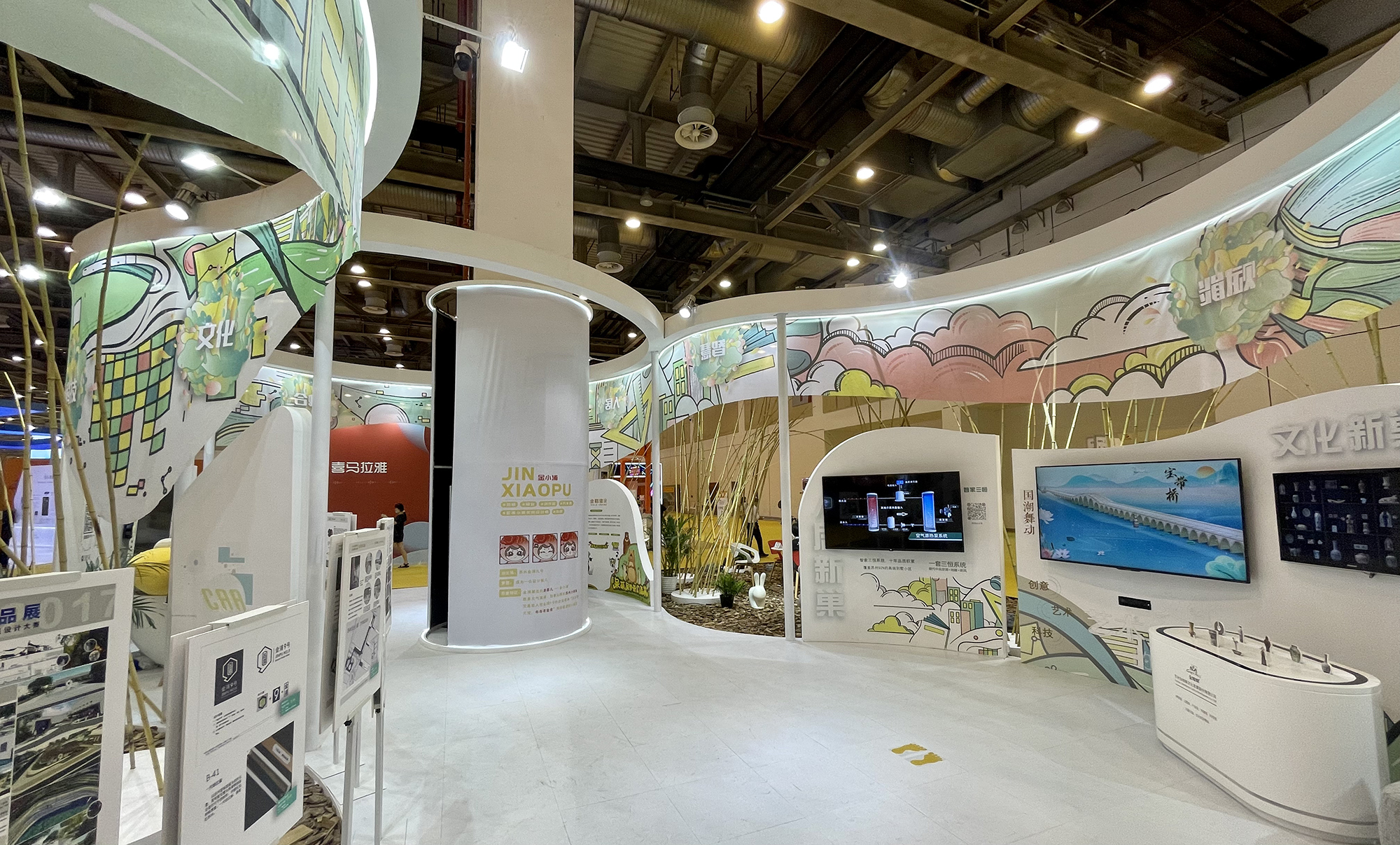 Gold Mantis 守望與創(chuàng)新同行,古韻與今風(fēng)同在。 十年經(jīng)驗積淀,文化創(chuàng)意精彩紛呈, 第十屆蘇州創(chuàng)博會隆重開幕。 金螳螂文化聚力呈現(xiàn)張家港展廳 與金浦·新“巢”時代展廳, 邀您共襄盛會! 9月23日,為期三天的第三屆運博會文創(chuàng)產(chǎn)業(yè)展暨第十屆中國蘇州文化創(chuàng)意設(shè)計產(chǎn)業(yè)交易博覽會(簡稱“創(chuàng)博會”)在蘇州國際博覽中心B1/C1館順利開幕。 本屆創(chuàng)博會以“設(shè)計引領(lǐng),數(shù)字賦能”為主題,分設(shè)3大主題展區(qū)、51個特裝展館、345家參展企業(yè)。 創(chuàng)博會張家港展廳 地道江南,“箱”遇港城。坐落于長江之畔的張家港,是一座以境內(nèi)天然良港命名的城市,從數(shù)百年間新成的沙洲,到如今生態(tài)宜居的文明城市,張家港的文體旅產(chǎn)業(yè)快速發(fā)展。 23日,蘇州市政府副市長王飏等 一行領(lǐng)導(dǎo)參觀指導(dǎo) 9月24日上午,江蘇省文化和旅游廳李川副廳長蒞臨張家港幸運金屬工藝品有限公司展區(qū)指導(dǎo)工作,姚士榮大師向李廳長匯報了把非遺技藝融入文創(chuàng)和國宴器皿的創(chuàng)意。 由金螳螂文化出品的創(chuàng)博會張家港展廳,以“地道江南,相遇港城”為主題,分精華之地、精工之道、精品之風(fēng)、精選之物4大版塊展示張家港的地域風(fēng)貌、匠心民藝、發(fā)展引擎、港城味道。 金螳螂文化設(shè)計團隊將展廳打造成了一個多功能集裝箱,融入竹編、風(fēng)車、拼圖等元素,呈現(xiàn)多彩的張家港物產(chǎn)與文化發(fā)展。不僅僅是散發(fā)光亮的集裝箱,更喻意遠航的城市。 金浦·新“巢”時代 本屆創(chuàng)博會,金浦九號作為唯一一家參展的文化產(chǎn)業(yè)園,在進館的C位展出。金螳螂文化進行了整個展位“金浦·新巢時代”的設(shè)計,并作為產(chǎn)業(yè)園入駐企業(yè)參展。 200多平米的展廳內(nèi),以“科技+設(shè)計”為主線,講述城市更新的時代背景下,融文化、產(chǎn)業(yè)、創(chuàng)新為一體的金浦九號文化產(chǎn)業(yè)園協(xié)同園內(nèi)百企開創(chuàng)的新“巢”時代之故事。 23日上午,江蘇省人民政府副省長、黨組成員馬欣,江蘇省文化和旅游廳黨組書記、廳長楊志純,蘇州市政府副市長王飏,蘇州市文廣旅局黨組成員、副局長尤培東一同蒞臨金浦九號展位參觀指導(dǎo),聽取了金浦九號在“文化+科技”產(chǎn)業(yè)的創(chuàng)新實踐的工作匯報。 生活的藝術(shù),藝術(shù)的生活。金浦·新“巢”時代共展出文化新巢、科技新巢、人居新巢等六大主題的文化+科技新體驗,給廣大市民呈現(xiàn)一場“創(chuàng)新+創(chuàng)意”的盛宴。 流暢的圓弧串聯(lián)起各家企業(yè)的展示內(nèi)容,木屑與竹子的材質(zhì)凸顯“新巢時代”的主題,保證展廳整體性的同時兼顧了企業(yè)內(nèi)容的獨特性。 金螳螂文化帶來國潮舞動、文物探寶兩大互動展項,豐富了展廳的文化體驗,增加了參觀的趣味性。 上合組織駐華大使團參觀 此次蘇州創(chuàng)博會也是大運河文化旅游博覽會的組成部分之一。9月23日,江蘇省文化和旅游廳、江蘇省人民政府外事辦公室聯(lián)合邀請60余位來自上合組織的國際友人參加“水韻江蘇·運河行”活動。 當(dāng)天上午,來自哈薩克斯坦、吉爾吉斯斯坦、俄羅斯、塔吉克斯坦、烏茲別克斯坦、印度、伊朗,以及意大利、泰國、西班牙的駐華使節(jié)和代表參觀金浦九號文化產(chǎn)業(yè)園代表性入駐企業(yè)。 在金螳螂文化公司,駐華大使團參觀了LED立體雕塑、數(shù)碼博古墻、海底世界透明屏等展項,近距離感受讓文物活起來的現(xiàn)代多媒體數(shù)字技術(shù)。 “設(shè)計引領(lǐng),數(shù)字賦能”的創(chuàng)博會理念是金螳螂文化一直以來的追求。今后,金螳螂文化也將堅持創(chuàng)新表達,以“創(chuàng)意+藝術(shù)+科技”跨界融合,致力于成為文化與藝術(shù)的傳播者。
