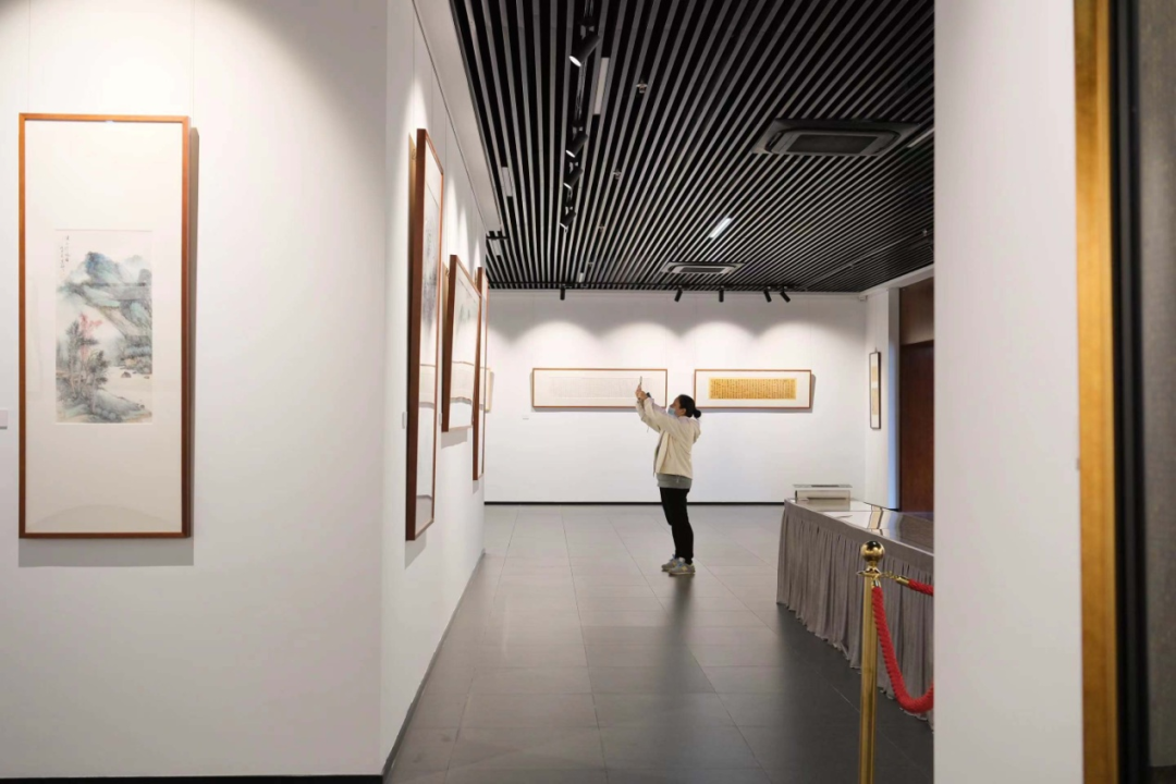 徐徐向內走去,小品、冊頁、扇面、條幅、長卷等150余件作品令人目不暇接,作品涵蓋了山水、人物、竹、梅等題材,全面展示了江南文化特色。
