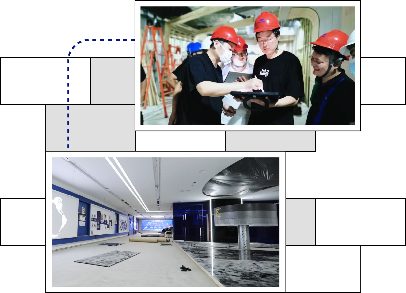 從策劃設計到落地施工,金螳螂文化項目團隊全身心投入,全過程把控,總裁曹永輝多次前往項目現場考察,針對施工的進度與質量等提出指導意見,推進項目順利實施。