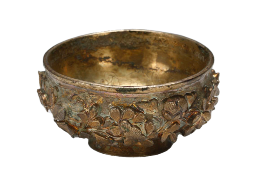 △ 行春橋魏三郎匠刻牡丹紋鎏金銀盞,宋,杭州博物館藏