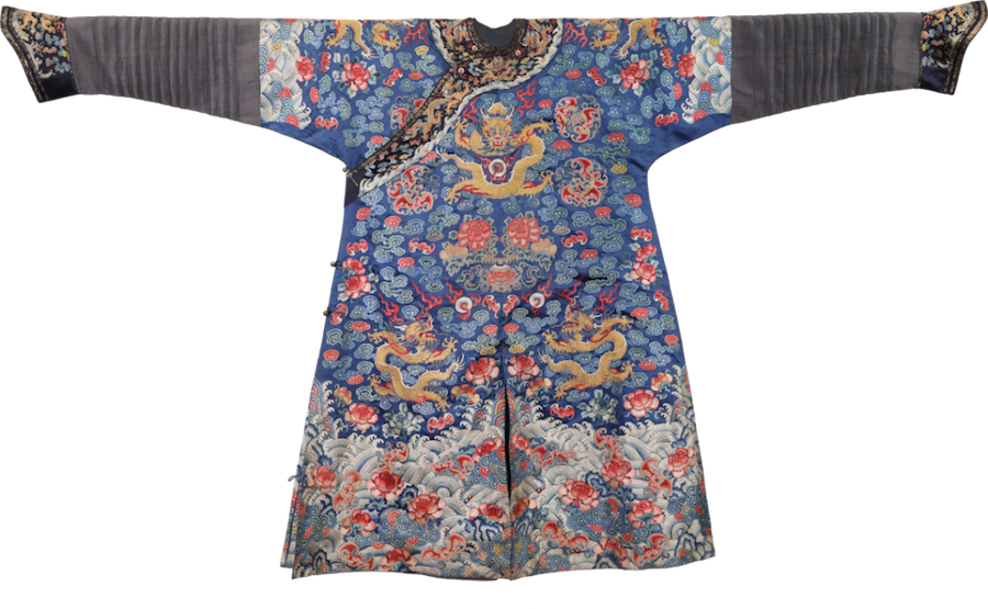 △ 藏青地海水云龍紋繡蟒袍,清,蘇州絲綢博物館藏