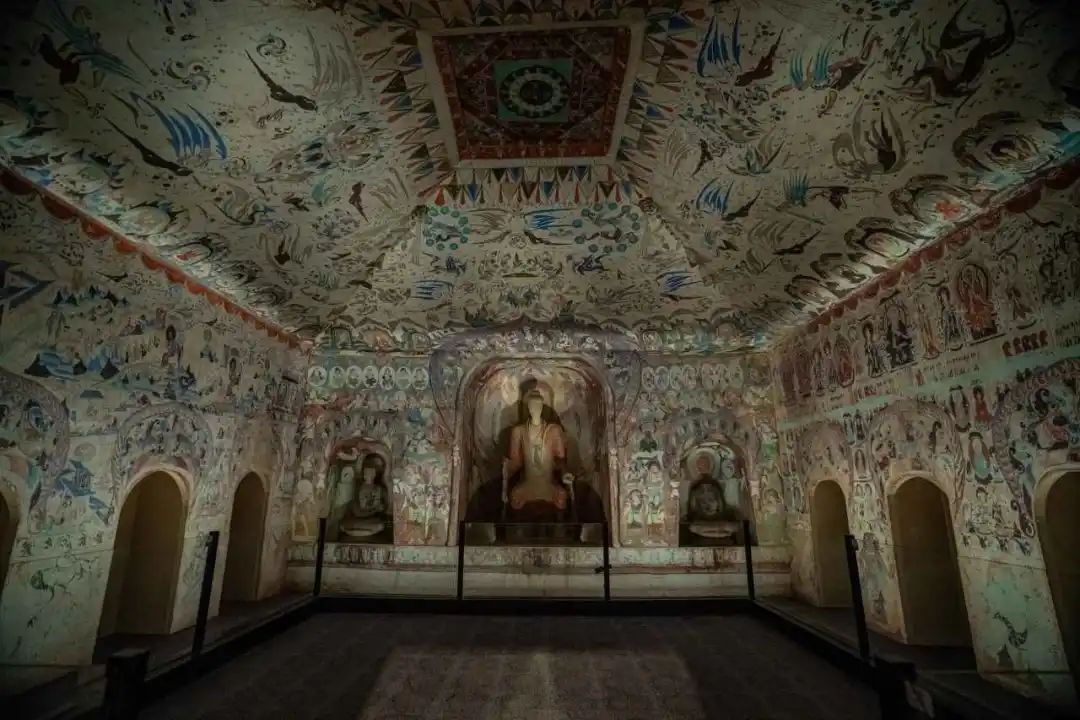 步入展廳,六座精心復原的洞窟最為震撼。它們多為特級保護洞窟,其中第3窟與第285窟屬不開放洞窟,莫高窟年代最早的第275窟更是首次實現了數字化整窟輸出,第320窟則展出了全窟壁畫臨摹作品。
